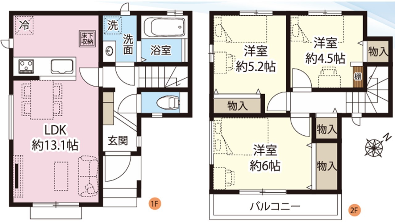 | 間取 | 3LDK (LDK13.1帖、洋室6帖、洋室5.2帖、洋室4.5帖) | ||
