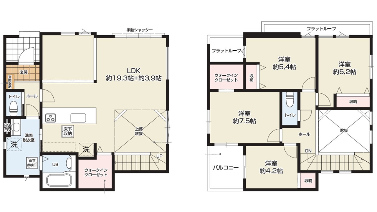 | 間取 | 4LDK (LDK23.2帖、洋室7.5帖、洋室5.4帖、洋室5.2帖、洋室4.2帖) | ||