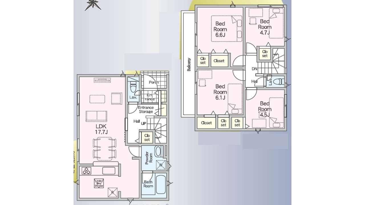 | 間取 | 4LDK (LDK17.7帖、洋室6.6帖、洋室6.1帖、洋室4.7帖、洋室4.5帖) | ||